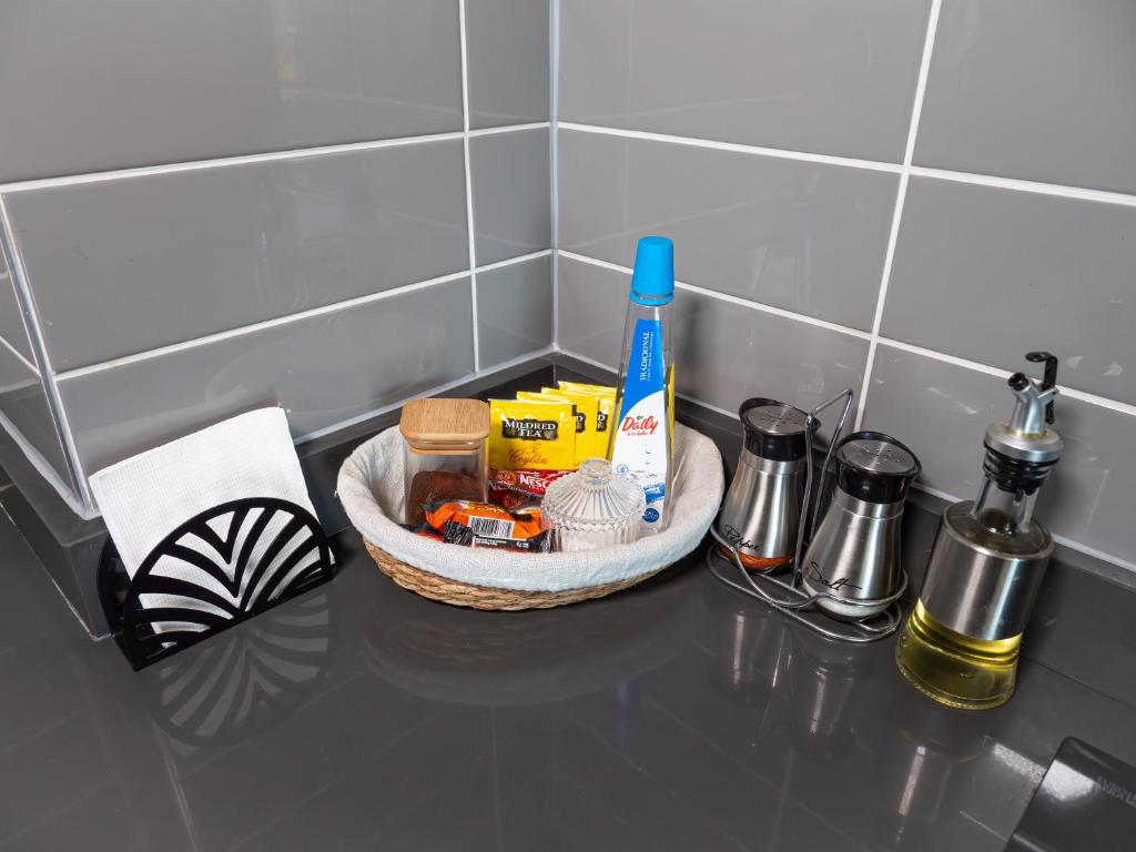 Kitchenette, Refrigerator, Washing machine, Kitchen, Electric kettle, Kitchenware, Oven, Cleaning products, Coffee machine, Dining table, Wine glasses