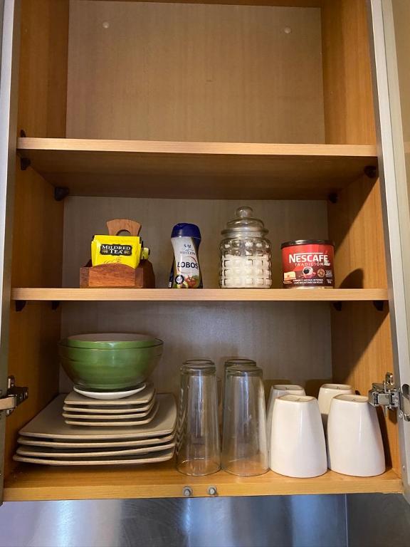 Kitchenette, Refrigerator, Microwave, Washing machine, Kitchen, Electric kettle, Kitchenware, Dryer, Toaster, Cleaning products, Coffee machine, Dining table, Wine glasses