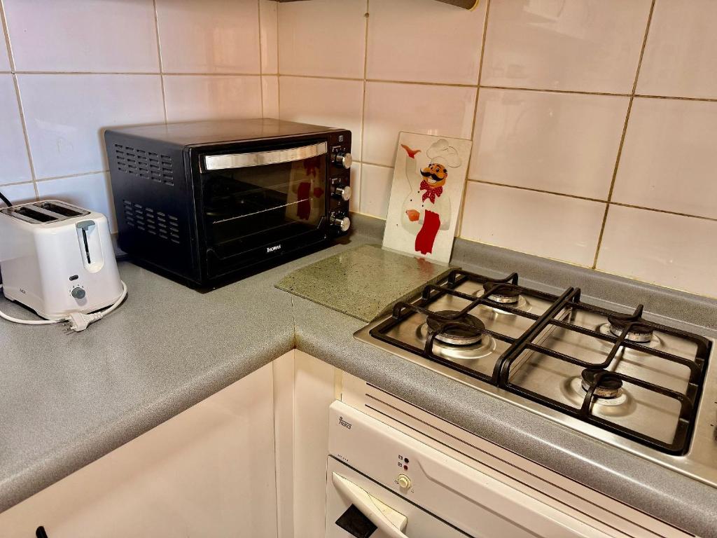 This apartment's special feature is the pool with a view. This apartment consists of 2 bedrooms, kitchen, a terrace and 2 bathrooms with a bath. The well-equipped kitchen features a refrigerator, a dishwasher, kitchenware and an oven. The apartment has a washing machine, an electric kettle, a sofa as well as a balcony with sea views. The unit offers 3 beds.